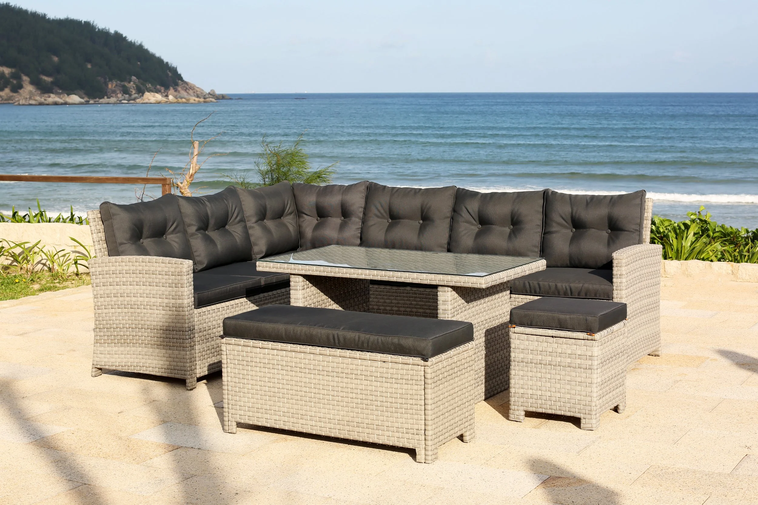 As one of Fairford & Stow’s bestselling collections, the Palma is a generously sized and expertly crafted lounge set that accommodates up to nine people. Similarly to many Fairford & Stow collections, the Palma is crafted using maintenance-free polyrattan and includes easily removable cushions.